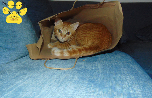 O Riscas adora caixas e sacos para se meter lá dentro. Então se o saco for de papel ainda gosta mais!
