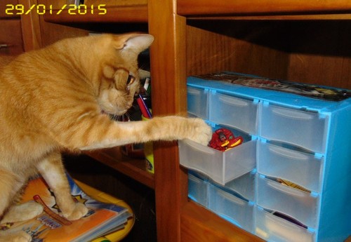 Ahahahahaha! Tão giro.... portas eu sabia que os gatos abrem, agora gavetas confesso que foi a primeira vez! Esperto este gatinho amarelo!