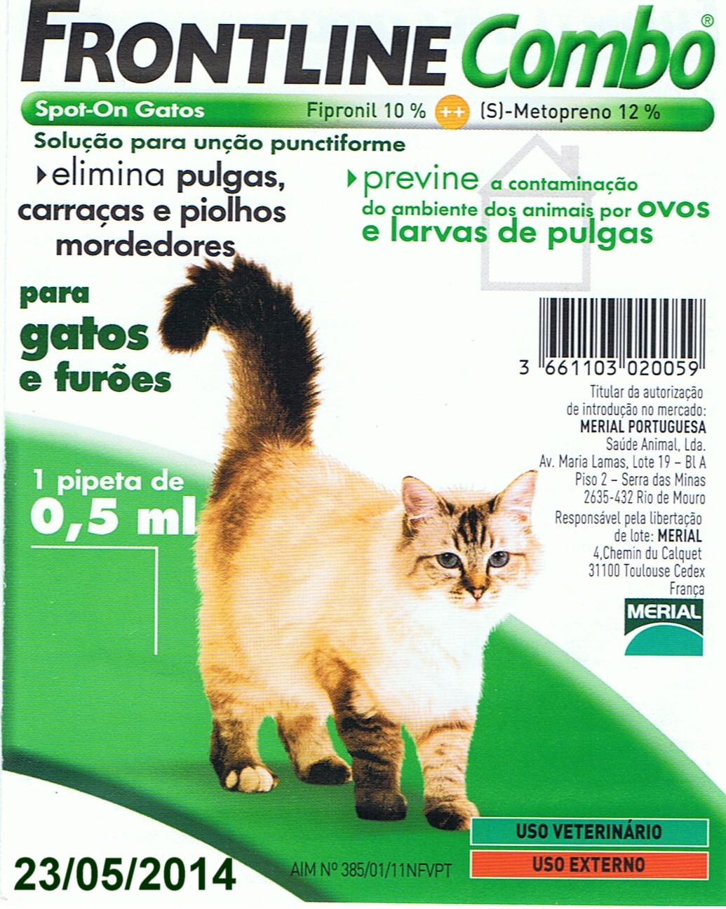 O Riscas é um gatinho que desde que veio para nossa casa (com pouco mais de cinco meses) sempre esteve num partamento. Não creio que alguma vez tivesse pulgas. Mas, como eu gosto de prevenir e porque encontrei este produto numa farmacia a um bom preço (não chegou a 3 euros) resolvi usar. A última vez que tinha usada foi há cerca de um ano atrás o FrontelineCombo.