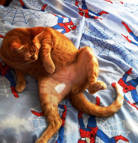 Será que é por o pêlo estar a renascer que lhe faz comichão e ele ao lamber-se faz ferida? Resolvi colocar halibut, espero que não seja má ideia!