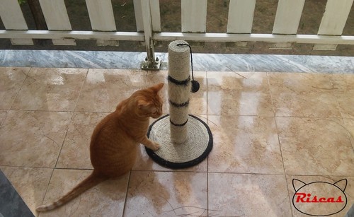 Dizem que sol e exercício é saudável para os nossos gatos. Mas os gatos de apartamento estão um pouco condicionados a isto, a não ser que haja uma varanda como é o caso do Riscas. E a dita varanda tem àrvores, pássaros e relva à frente.
