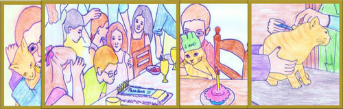 Este gato e a sua família deram em livrinho , pequeno, simples, com alguns desenhos e uma história carinhosa e verdadeira.