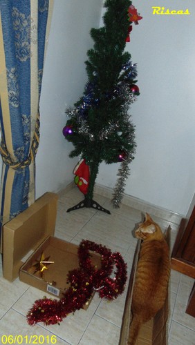 Finalmente chegou o dia de desmanchar a árvore de natal. Devo dizer que aqui o artista das riscas amarelas, já se tinha habituado a ver a árvore de pé, e já há mais de 10 dias, que não a derrubava!