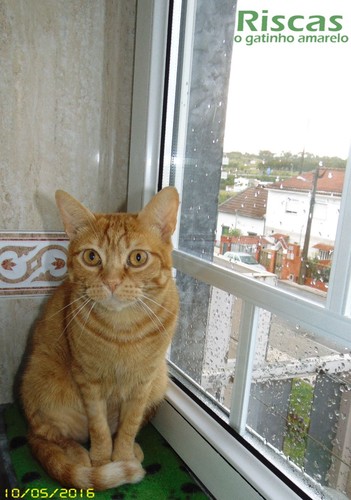 Pois é, não há sol, e o Riscas fica na janela a ver as gotas a cair, na esperança que o sol ainda o venha aquecer hoje! Pelo menos o Riscas pode ver a chuva sem se molhar, já estes amigos, têm de ficar à chuva!