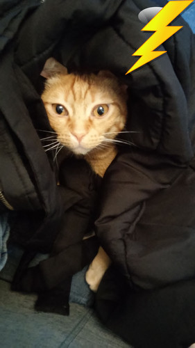 Fez uma trovoada tão rija, que o meu gatinho, que estava anichado no meu casaco, deu um salto de susto! Ele e eu , porque, também eu, sempre tive medo de trovoadas!