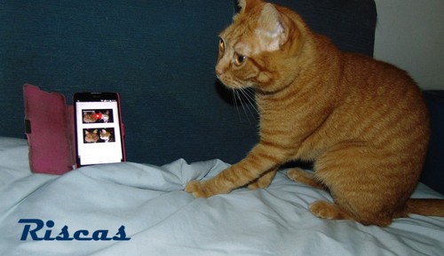 Depois de ver este post, no Clube, que falava de música para gatos, resolvi ver qual a reação do Riscas. Na 1ª música ele não ligou, mas na segunda, reagiu: primeiro ficou a ouvir, depois andou a tentar descobrir de onde vinha o som...